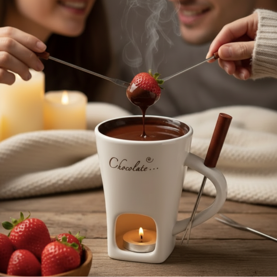 Create an intimate chocolate fondue right at your table without the need for bulky sets.